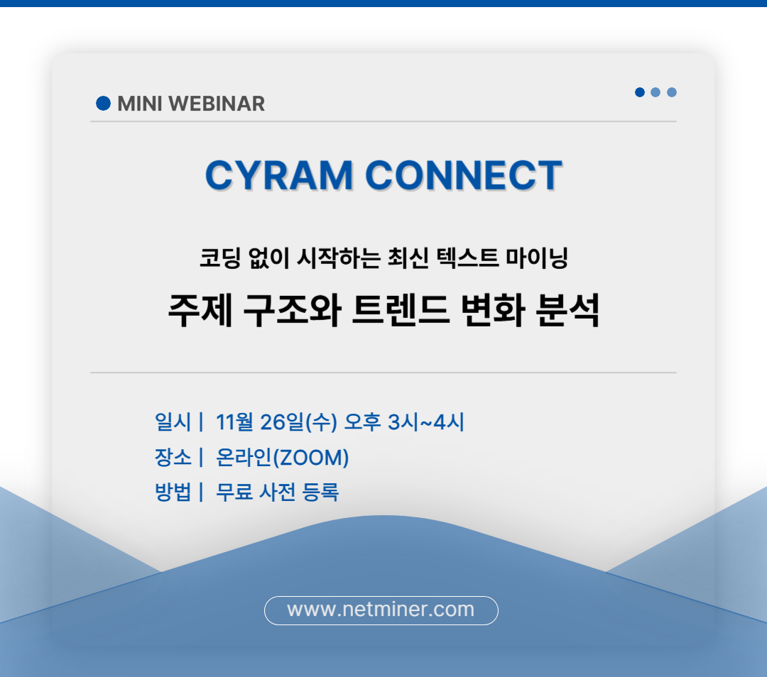 이번 웨비나에서는 최신 토픽 모델링의 핵심 원리와 분석 방법, 결과를 직관적으로 이해할 수 있도록 시연과 함께 설명합니다.
